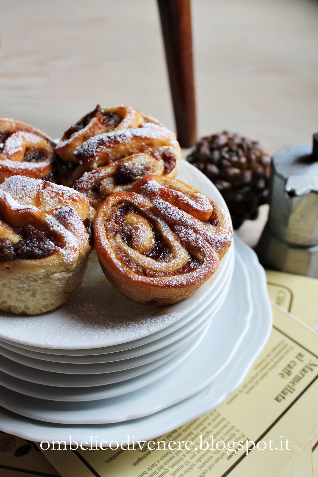 Riprendete l’impasto stendetelo in due rettangoli di circa 30×20 stendete un velo di crema alla mandorla e sopra la marmellata al caffè. Arrotolate nel senso della lunghezza e mettete in freezer a rapprendere, quando il rotolo sarà abbastanza sodo tagliatelo a rondelle larghe circa 3 cm , imburrate degli stampini monodose in alluminio disponete in ogniuno due rondelle, o anche una sola in base a quanto volete grandi le vostre brioches, lasciate lievitare almeno due ore e cuocete a 180° per circa 20 minuti.