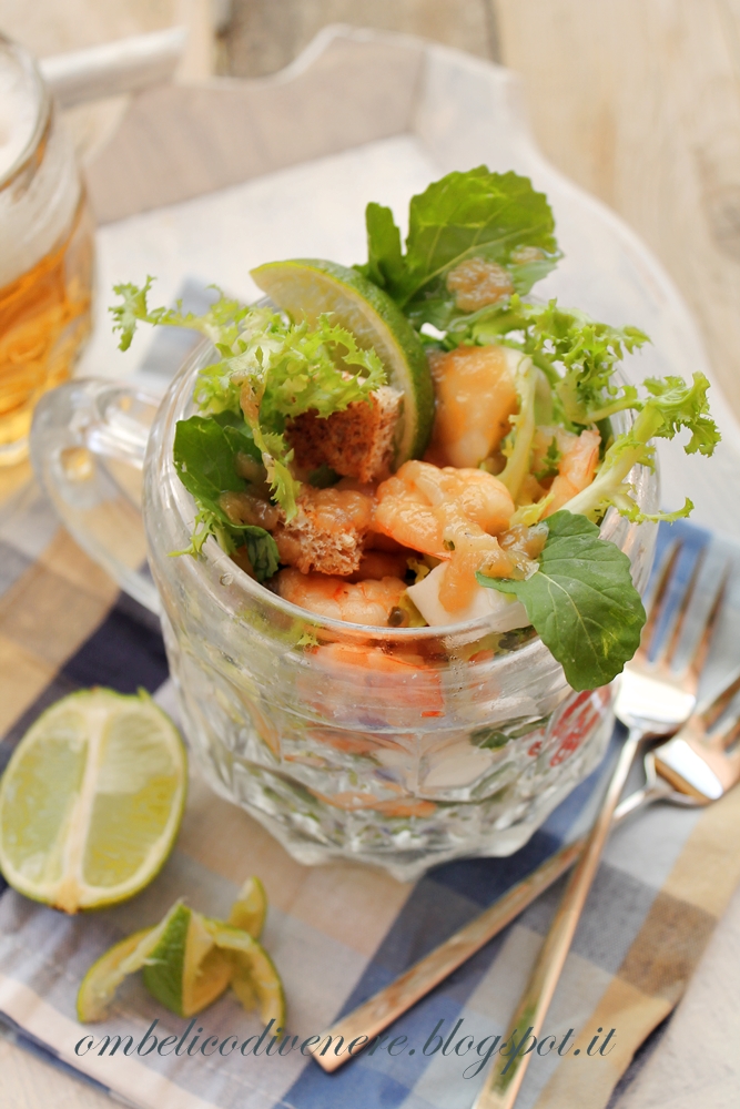 INSALATA DI GAMBERI CARAMELLATI ALLA BIRRA