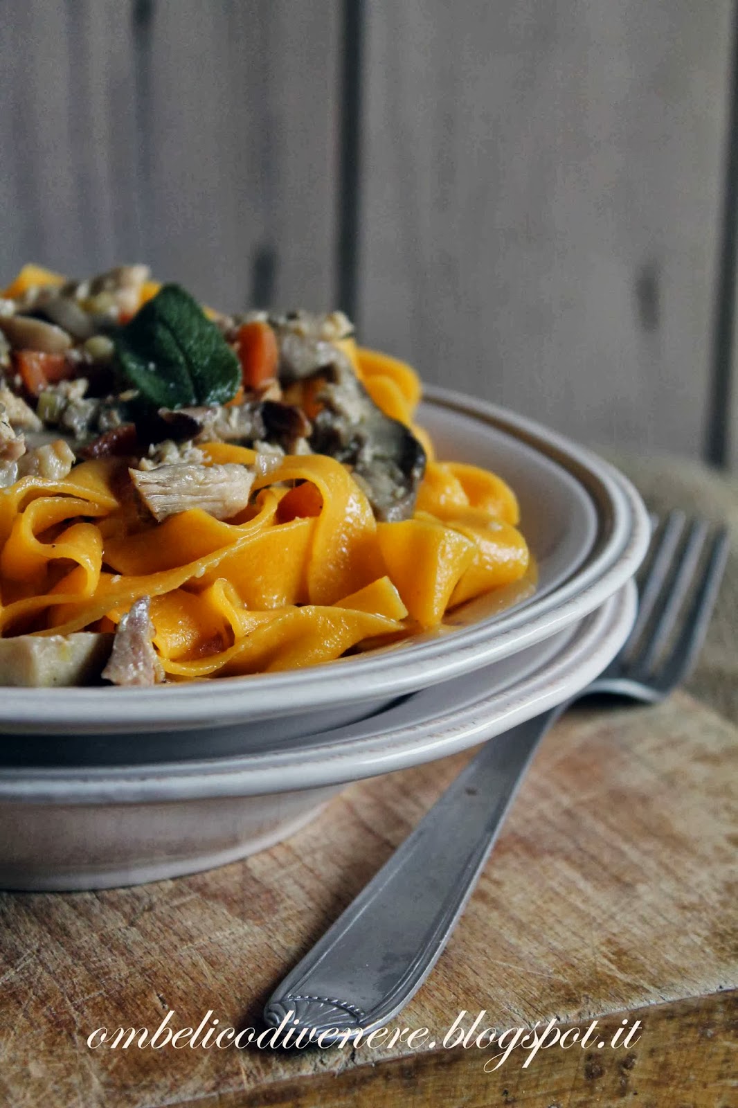 Private la zucca della buccia e dei semi, tagliatela a pezzi, cuocetela in forno in un “cartoccio” di alluminio per circa 45 minuti, finché non sarà tenera. Lasciatela raffreddare e frullatela. Create una fontana con la farina, al centro mettete la polpa di zucca e l’uovo intero, iniziate a lavorare il tutto finché si formerà un composto liscio e omogeneo, almeno dieci minuti. Avvolgete in pellicola per alimenti e lasciate riposare circa 15-20 minuti.